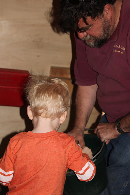 This weekend we spent some time at my parents farm. The boys helped Grandpop feed the alpacas.