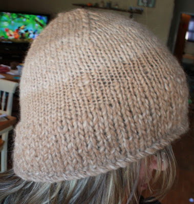 | This hat I designed and used a baby alpaca yarn. It is a dark gray. I love this hat. |